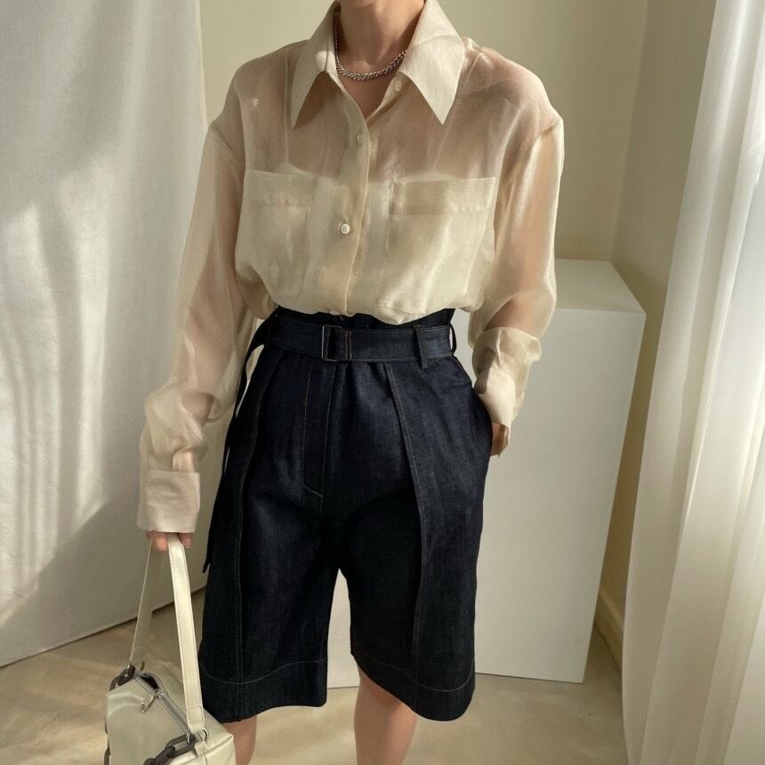 スタンダードスタイルダブルポケットカジュアルシフォンシャツ トップス レディース ロング レトロ 韓国婦人7647732733