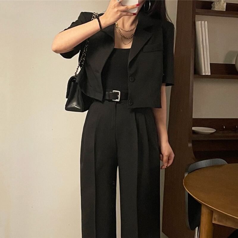 スタンダードスタイルショートジャケット ハイウェストサマー レトロ ストリート 夏物 韓国婦人92627707816