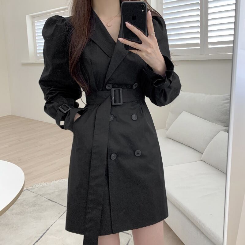 オータムスタンダードダブルブレストカジュアルウェストショートジャケット レディース レトロ 秋物 韓国婦人9380010210