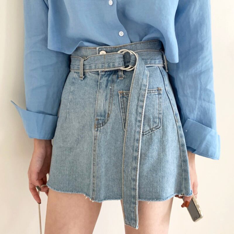 スカート サマーポケットストレッチAラインハイウェストウェストショートベルト エラスティック 伸縮 夏物 ハーネス 韓国婦人94385211069