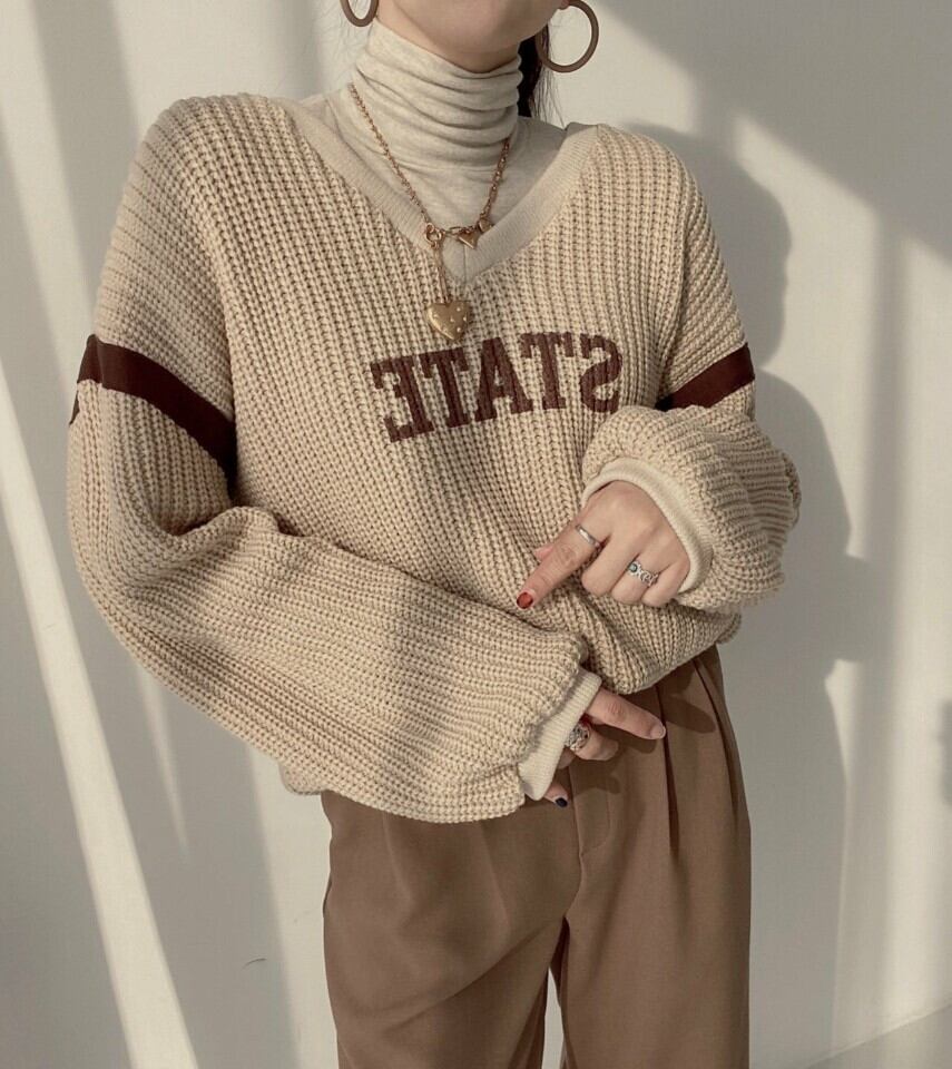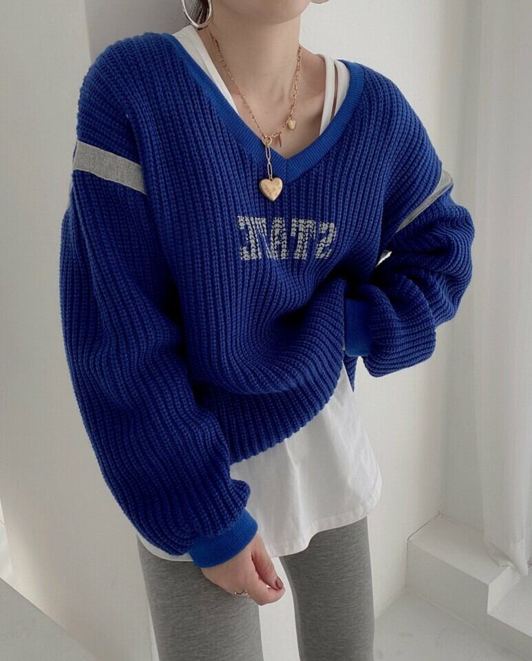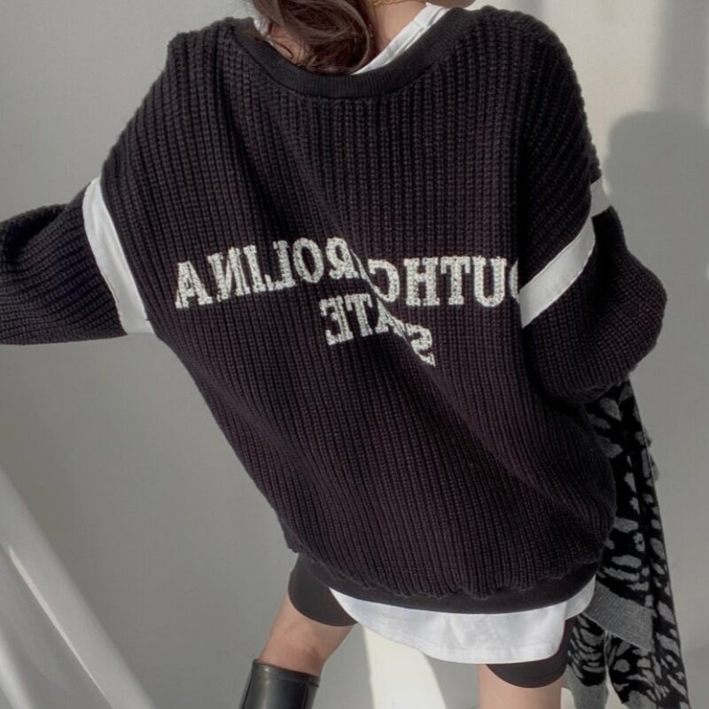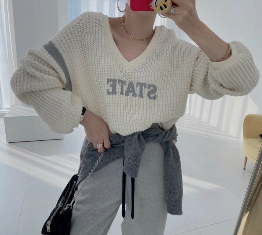 オータムウィンタースタンダードルーズVネックプリントスタイルニットセーター レディース レトロ 秋物 冬物 韓国婦人6973879882
