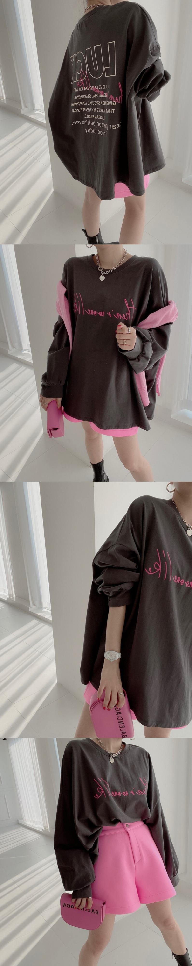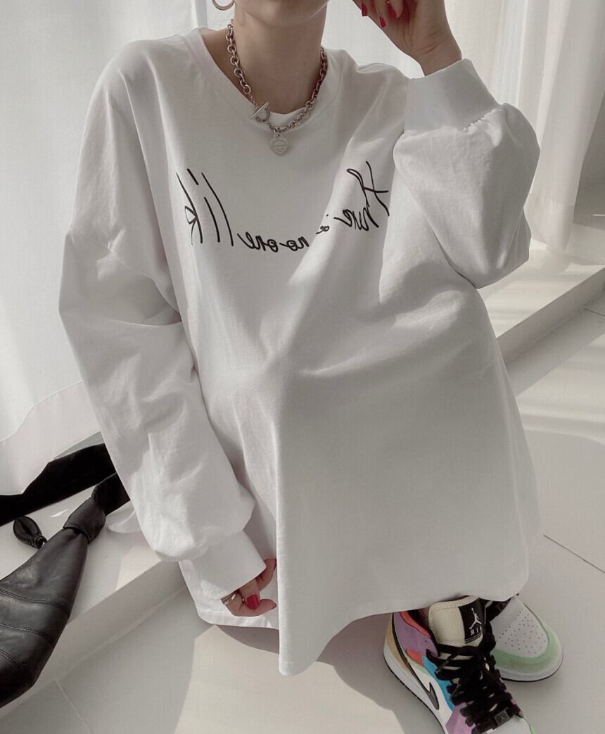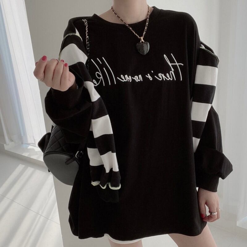 オータムスタイルカジュアルルーズバックプリントTシャツ トップス レディース ロング 秋物 韓国婦人3825600205