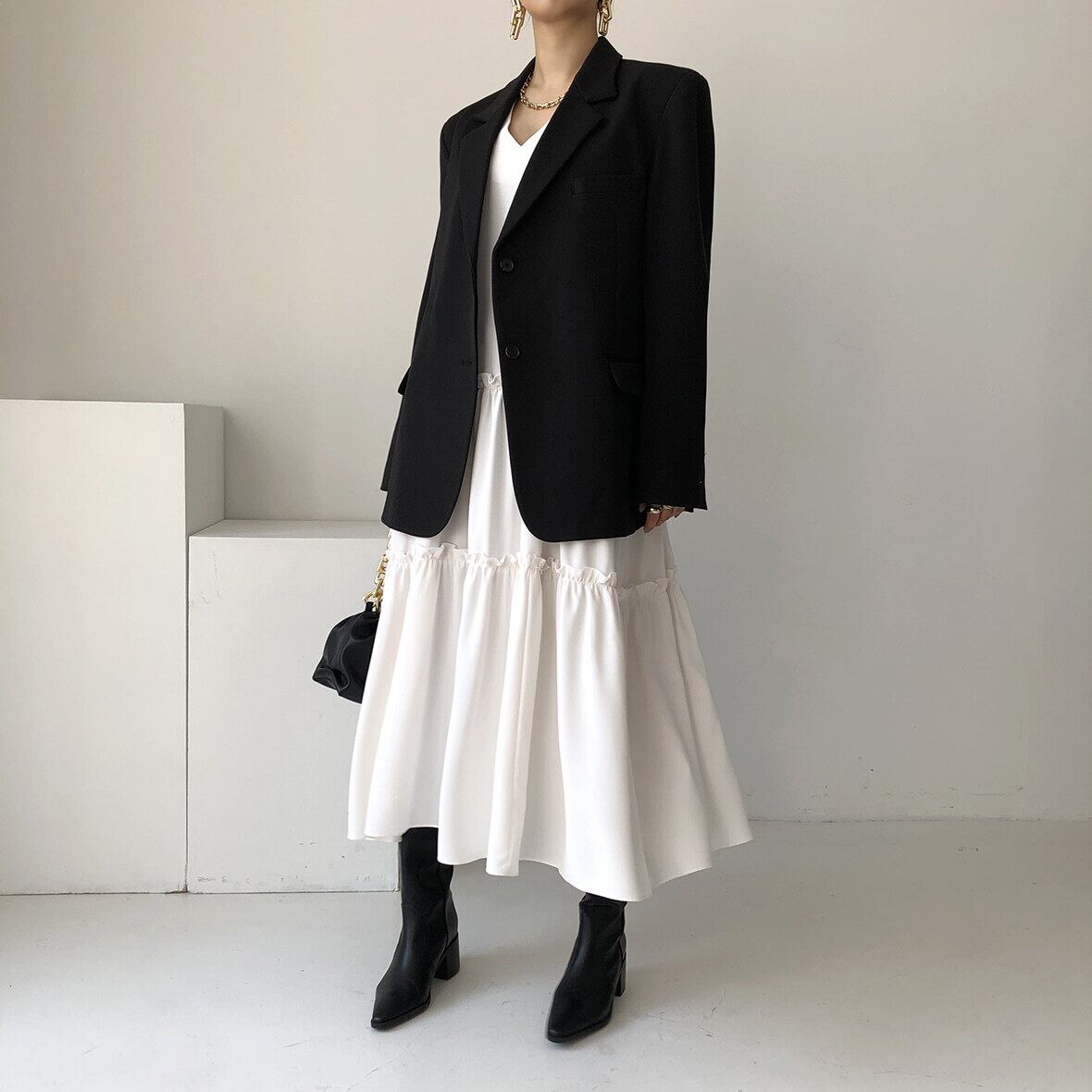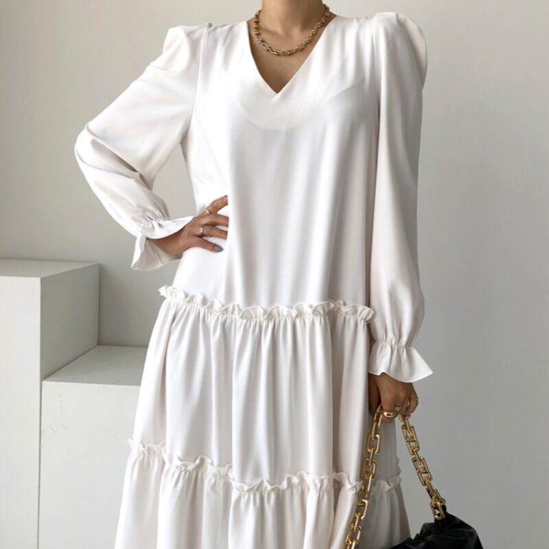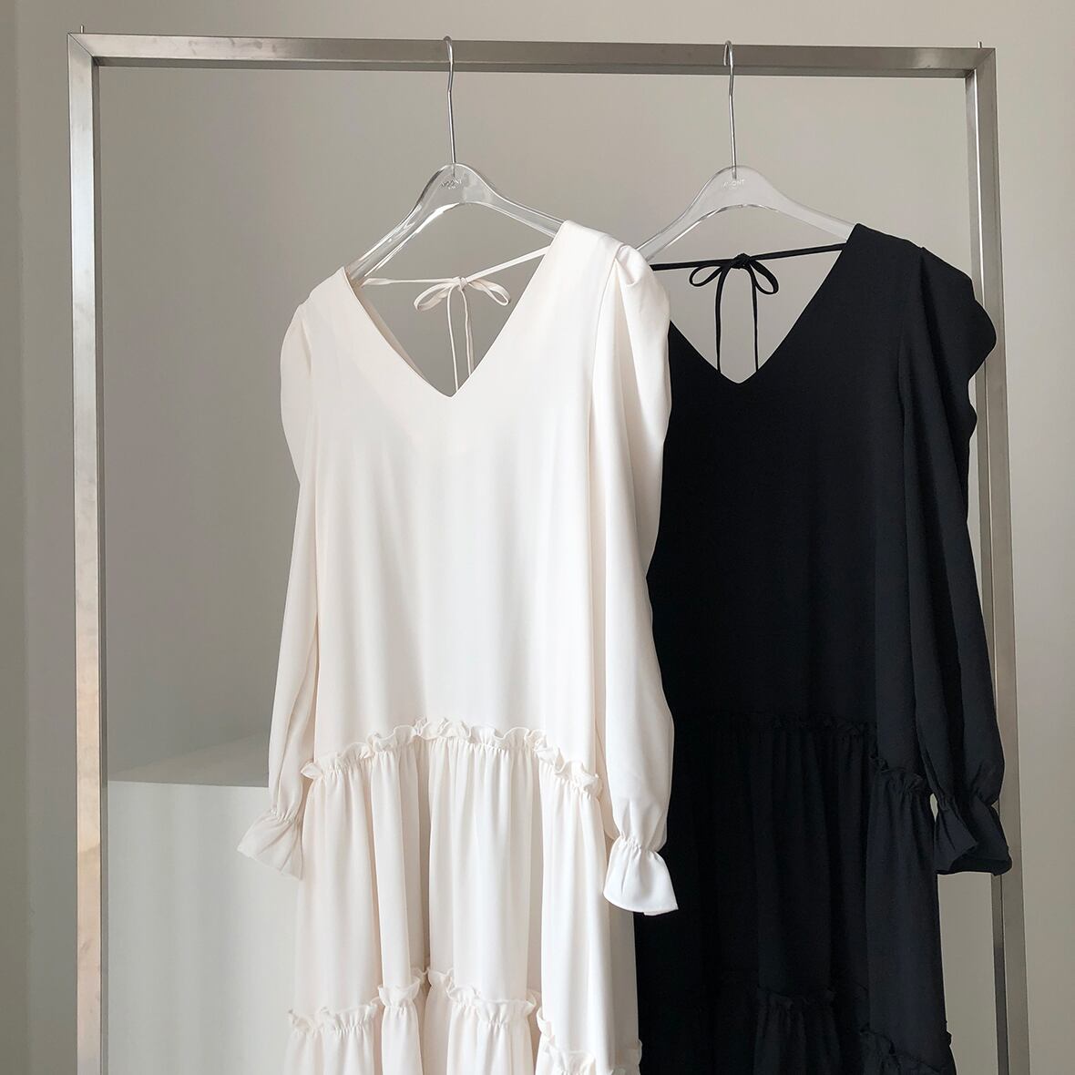 オータムスタイルVネックバックルーズロングドレス レディース 秋物 韓国婦人31546403673