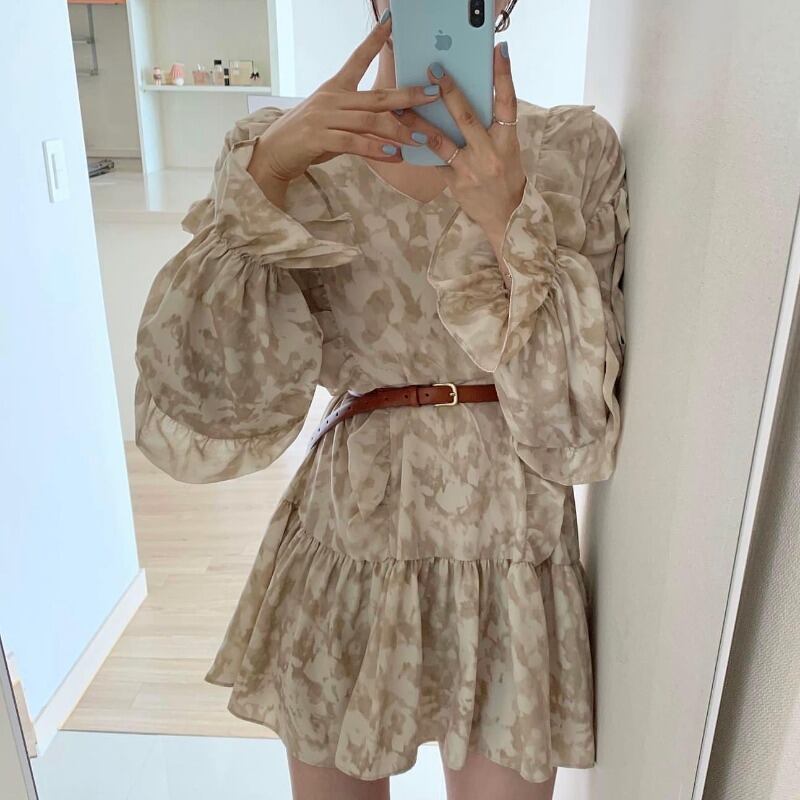 スプリングレディースフローラルドレス 大人ガーリー スウィート キュート カジュアル 春物 花柄 韓国婦人56013279445