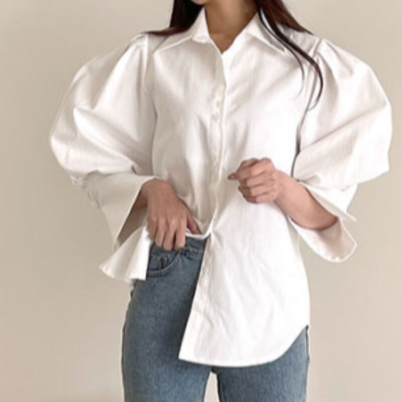 スタンダードシングルブレストルーズスリーブシャツ トップス レディース ランタンスリーブ レトロ 韓国婦人60821447499