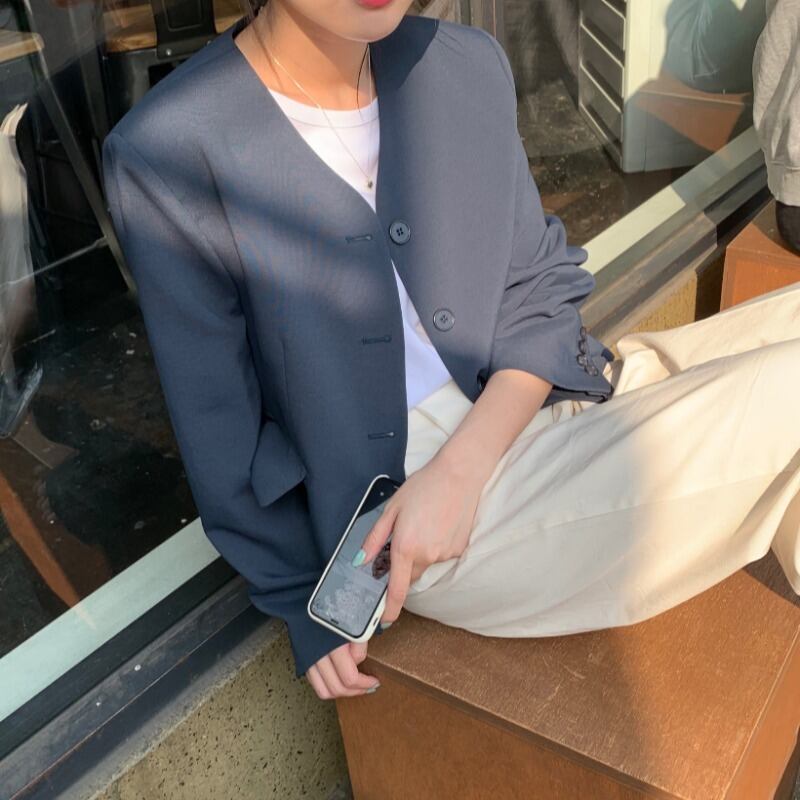オータムVネックショートジャケット ロング ストリート 秋物 韓国婦人7827609661