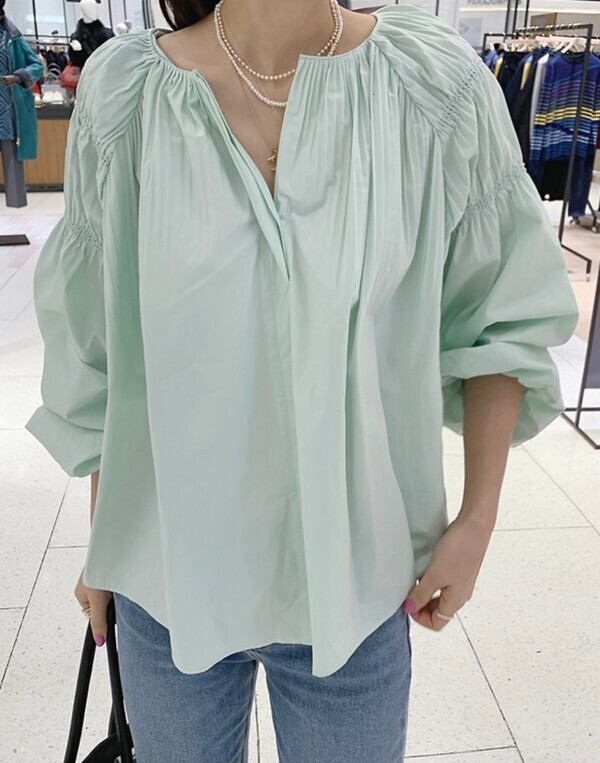 スタンダードVネックスリーブシャツ スタイルルーズトップス ロング ランタンスリーブ レトロ 韓国婦人39442118680