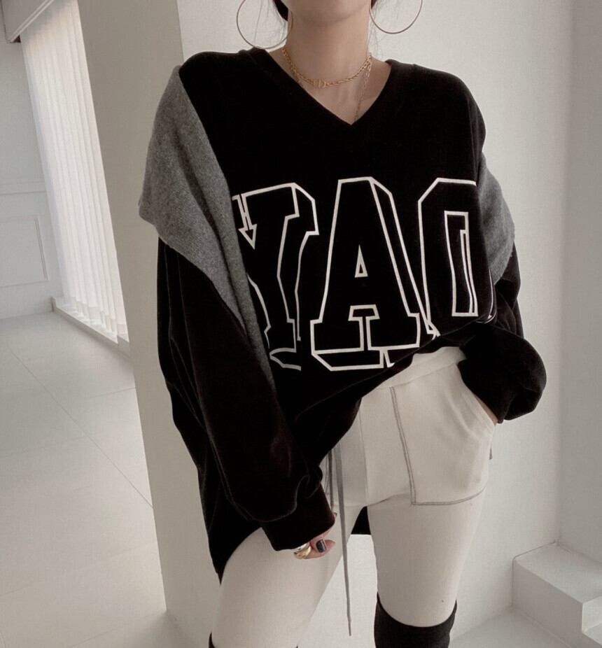 オータムウィンターVネックルーズプリントカジュアルセーター トップス レディース ロング 秋物 冬物 韓国婦人53504561034