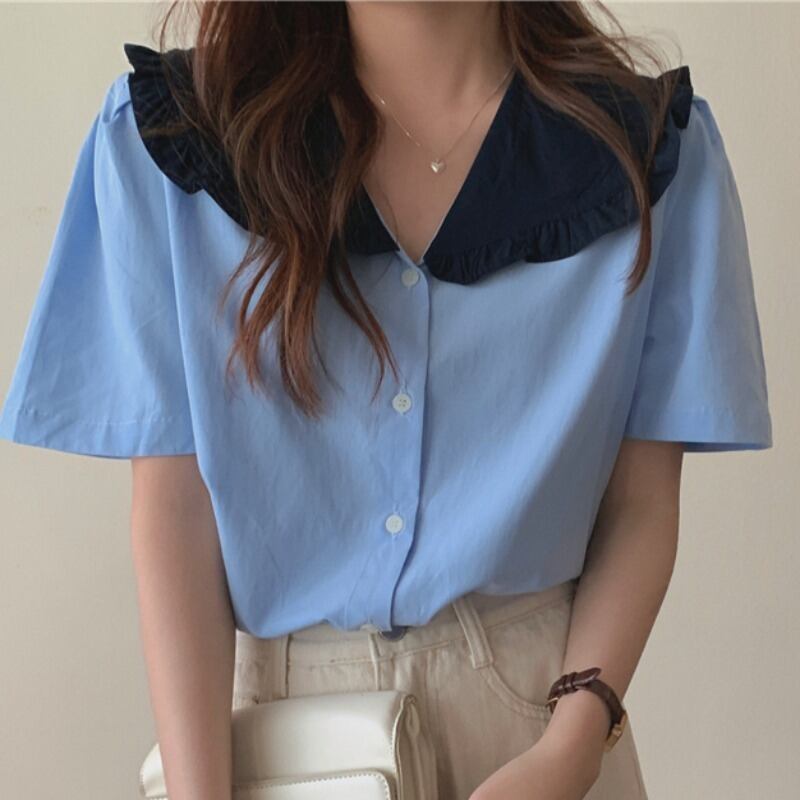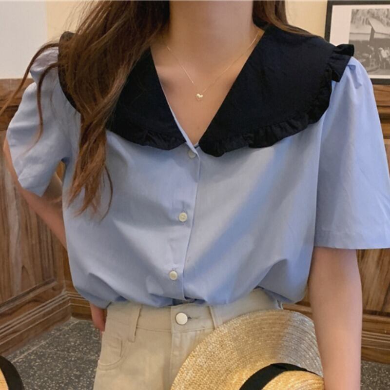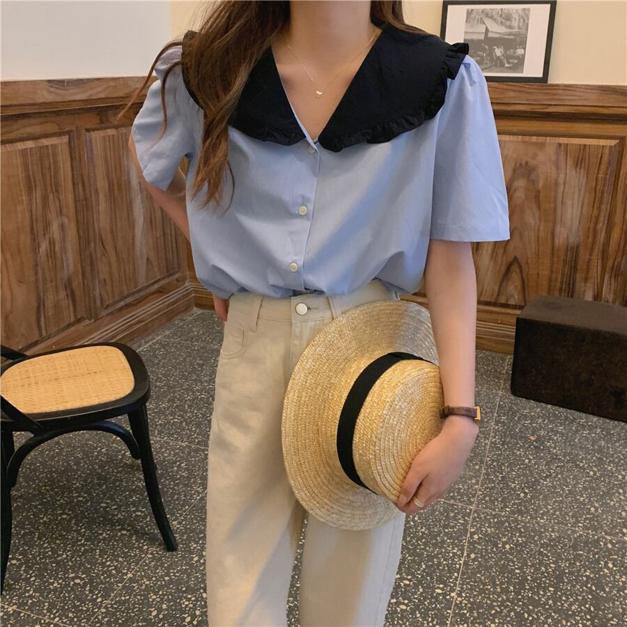サマースタンダードカラールーズシャツ レディース レトロ ブラウス 夏物 韓国婦人88262837767