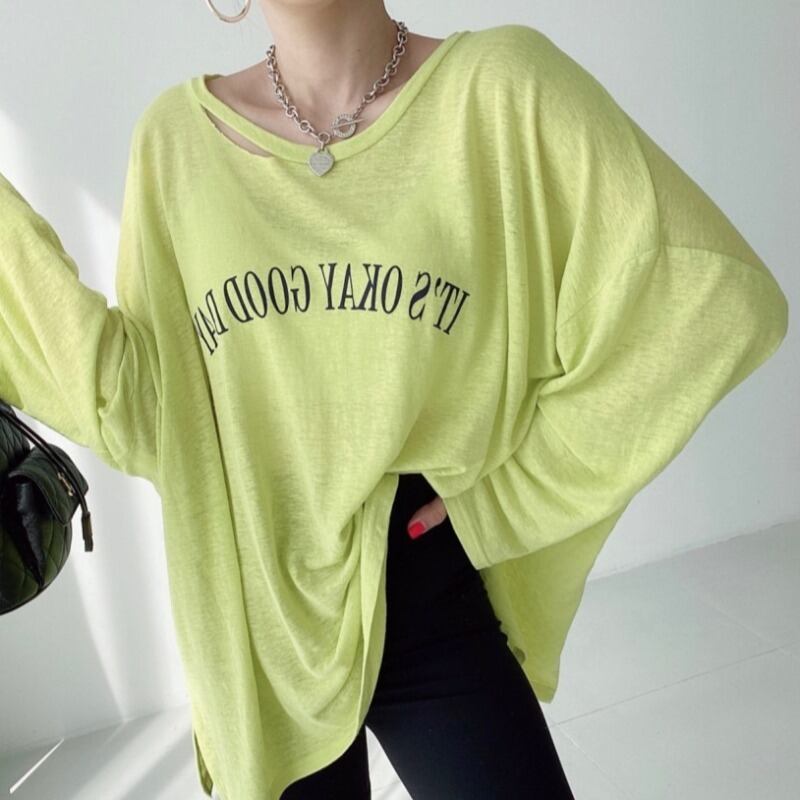オータムプリント薄手ラウンドネックTシャツ トップス レディース ロング 秋物 Oネック 韓国婦人54449698312
