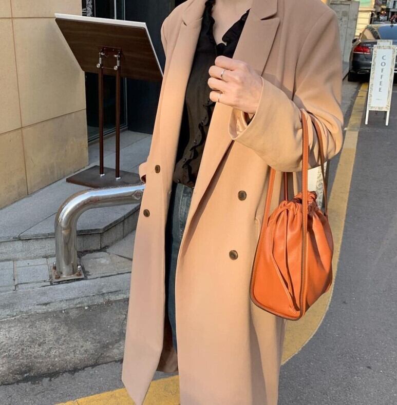 オータムスタンダードルーズカラーカジュアルロングジャケット レディース レトロ 秋物 韓国婦人50171902551
