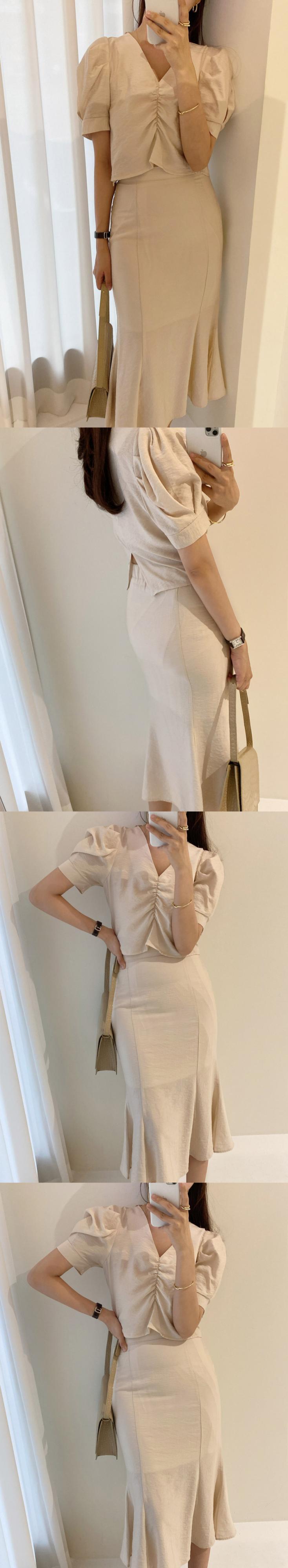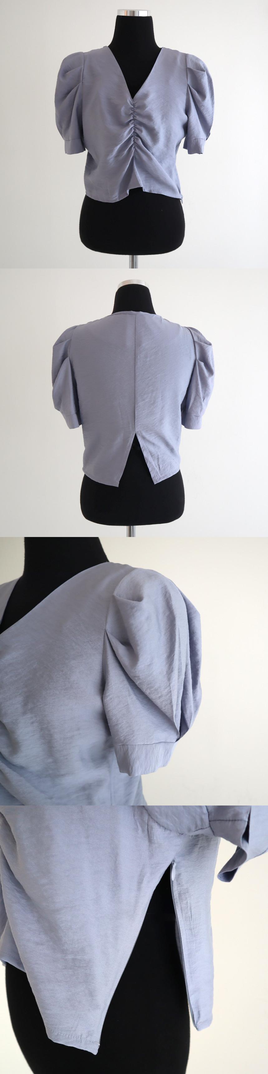 サマーVネックプリーツスリーブトップス スカート 夏物 韓国婦人54173426941