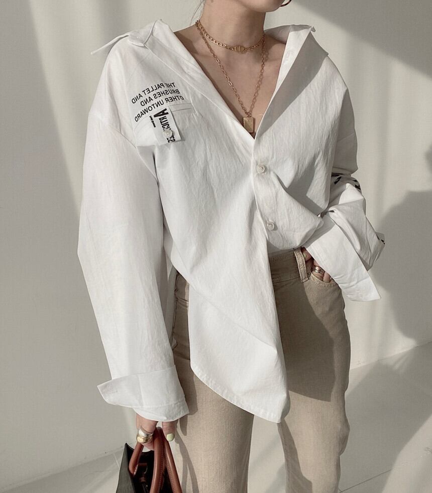 スタンダードスタイルプリントカジュアルルーズシャツ レディース レトロ 韓国婦人1804226625