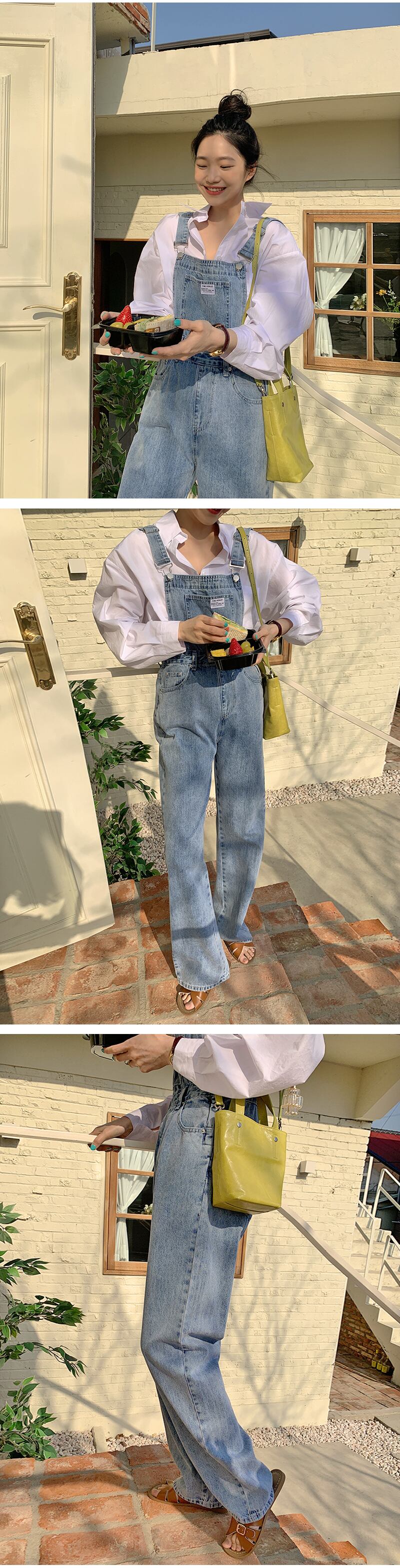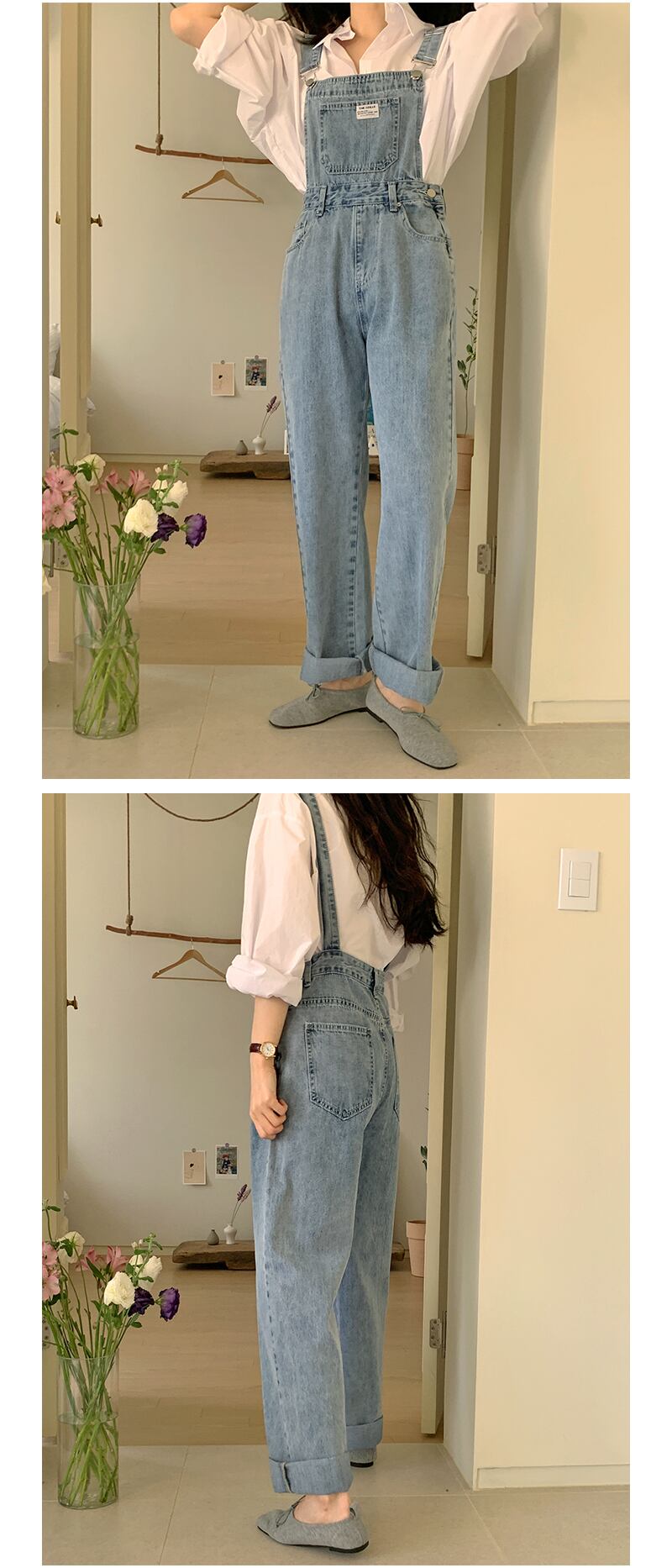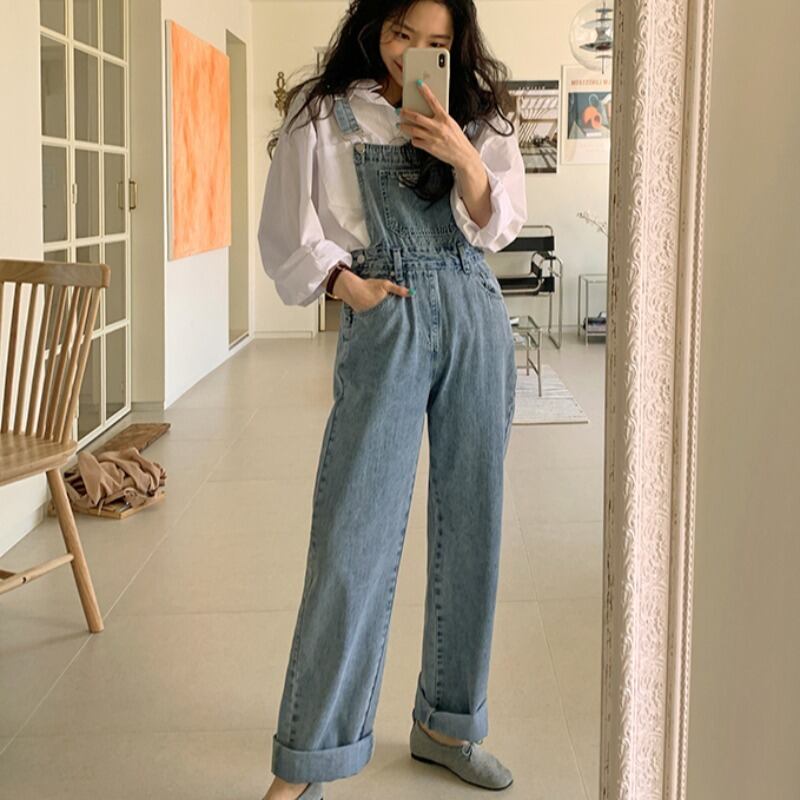 スタンダードブルーオーバーオール ルーズワイドレッグパンツ ハイウェストウェストスプリングサマー薄手 レトロ 春物 夏物 ワイドパンツ 韓国婦人33201190155