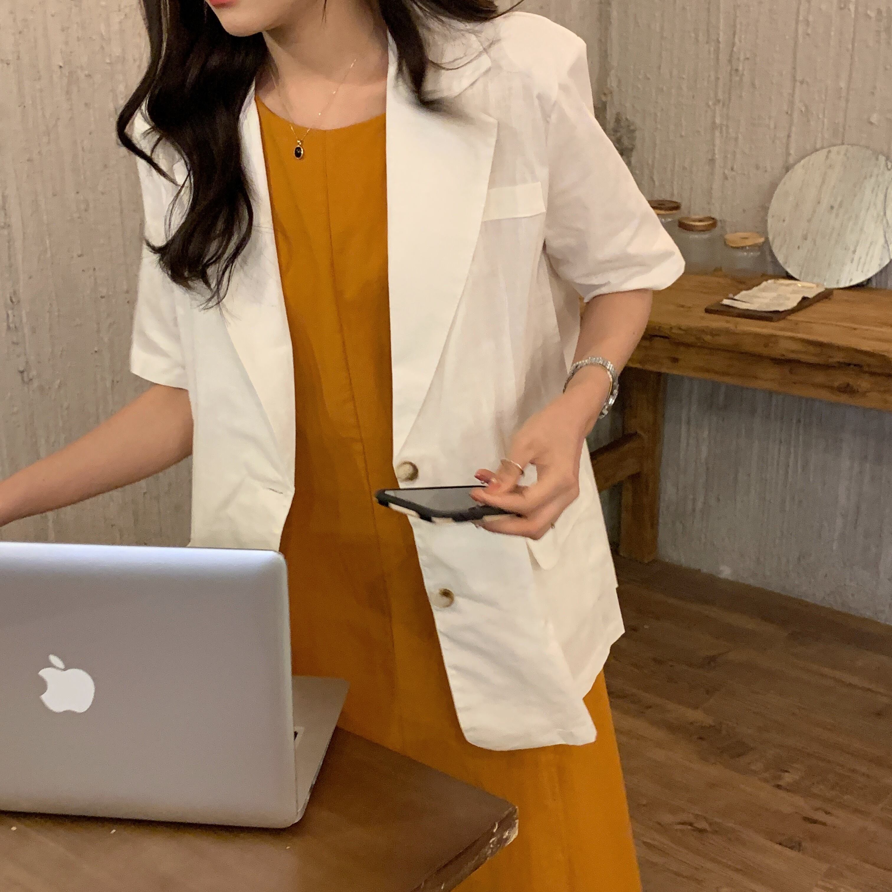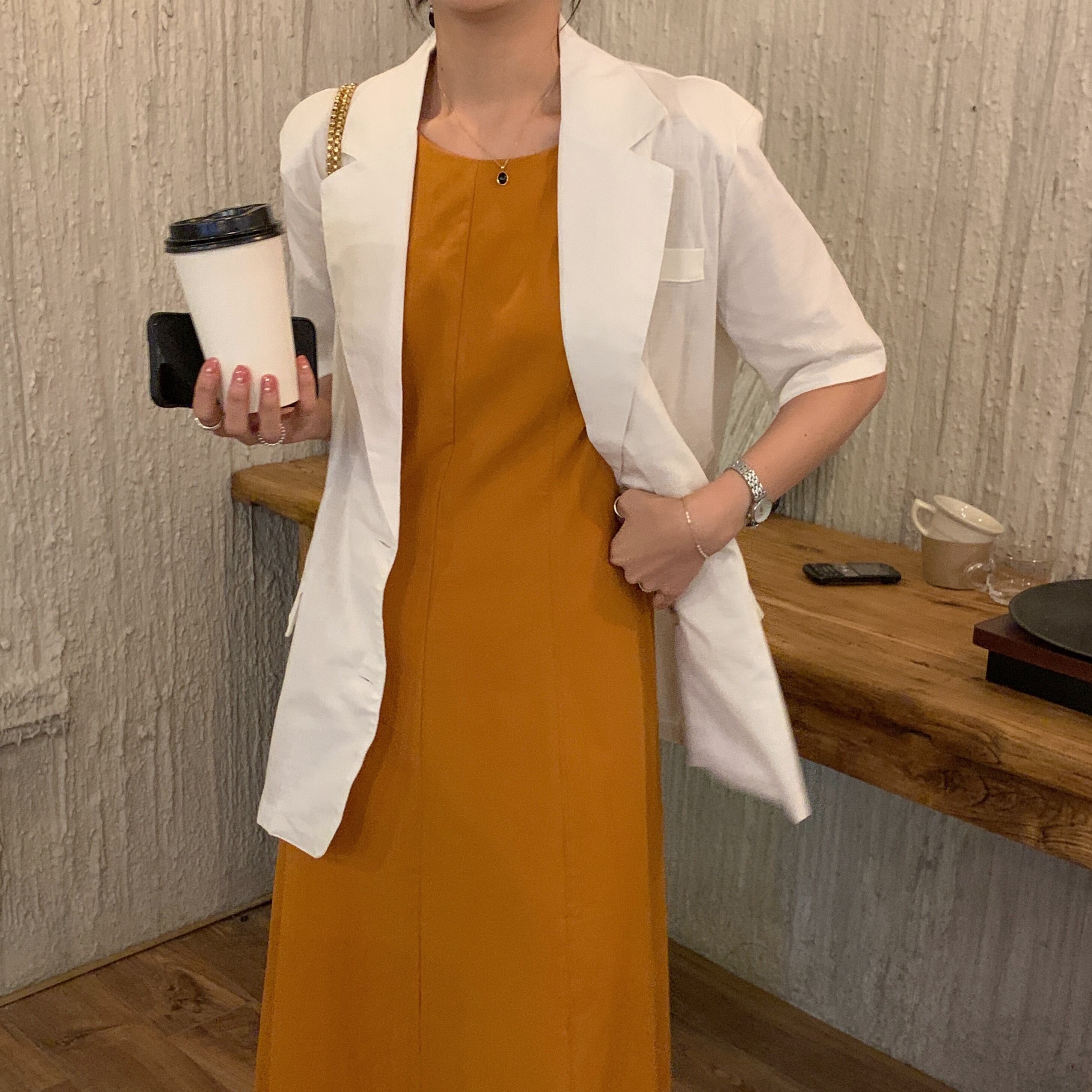 サマースタンダードロングノースリーブドレス ホワイトジャケット コットン レトロ 長袖 夏物 韓国婦人17204358680