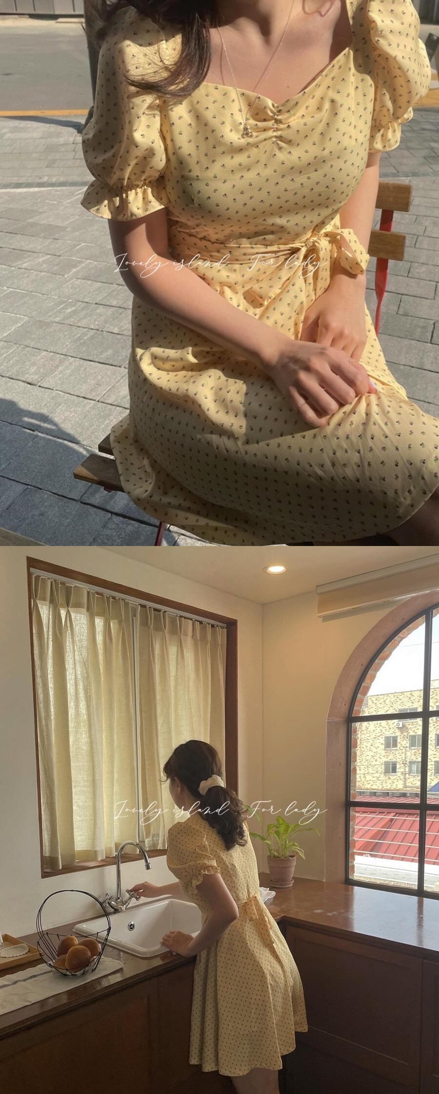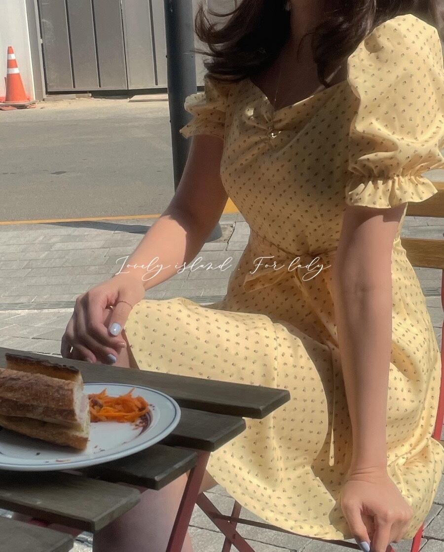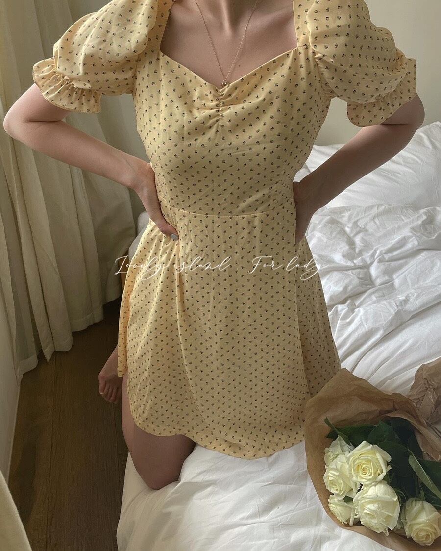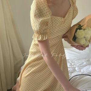 フローラルスリーブドレス レディースサマーシフォンスカート レース 大人ガーリー スウィート キュート カジュアル 夏物 花柄 レースアップ スクウェア 韓国婦人79776101033