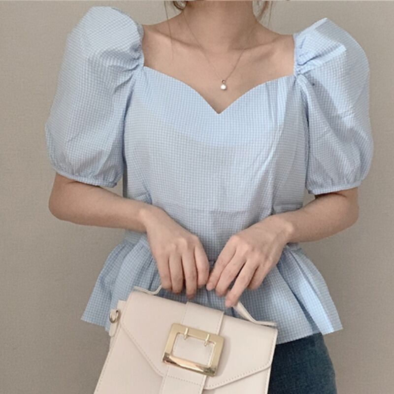 スタンダードスリーブシャツ スタイルウェストショートトップス サマードレス レッド レトロ 夏物 韓国婦人94807240670