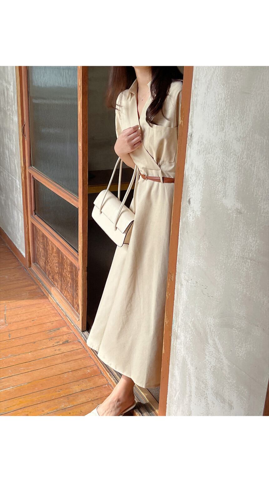 シャツ スカート サマークロスVネックベルト スリーブドレス ロング 夏物 ハーネス 韓国婦人62841570635