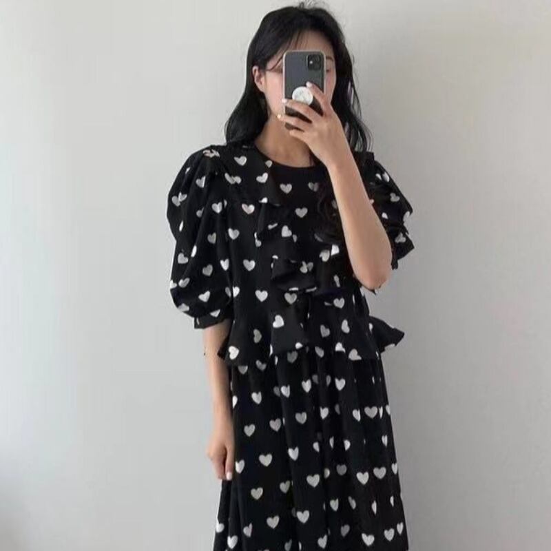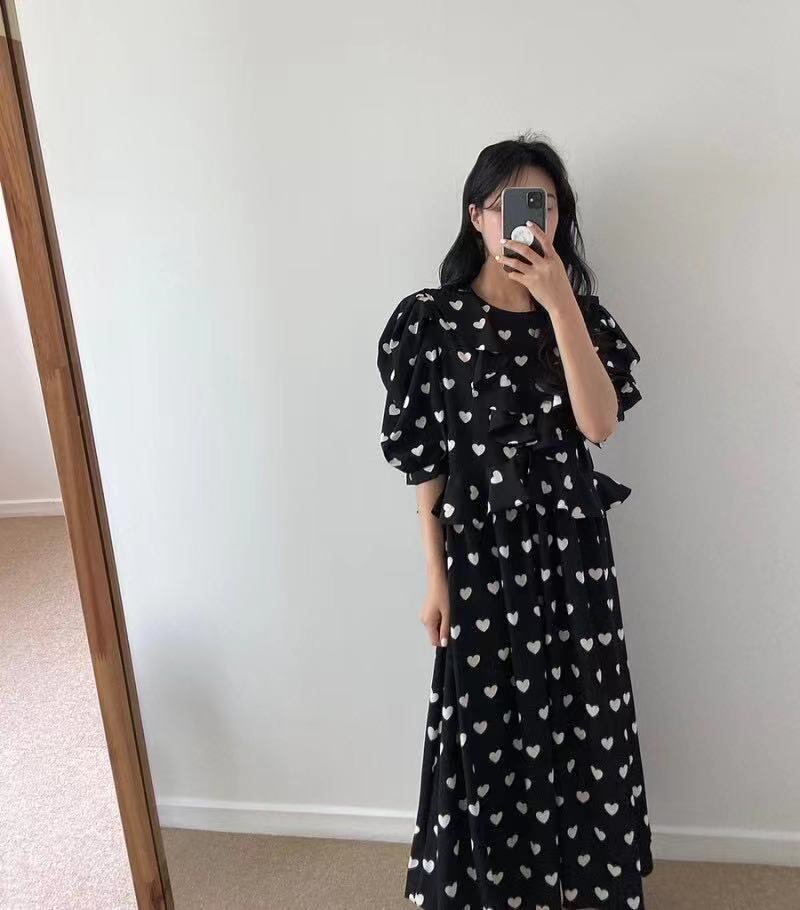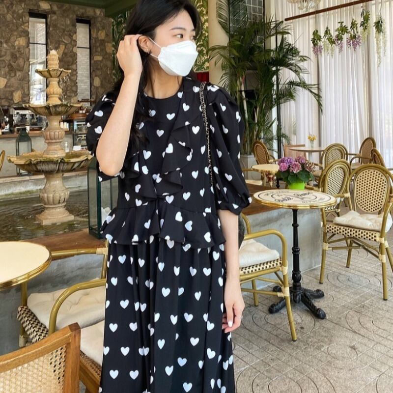 スリーブホワイトドレス サマーハイウェストウェストルーズロングスカート 大人ガーリー スウィート キュート カジュアル 夏物 韓国婦人94524786624