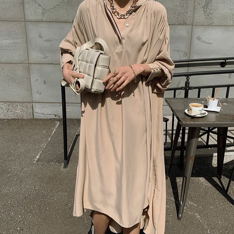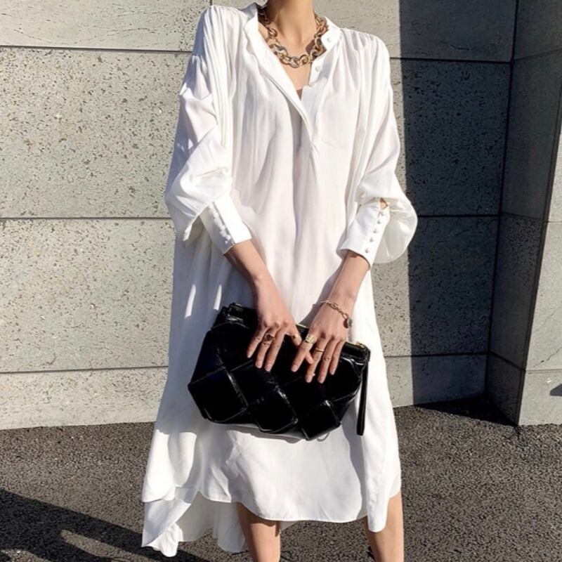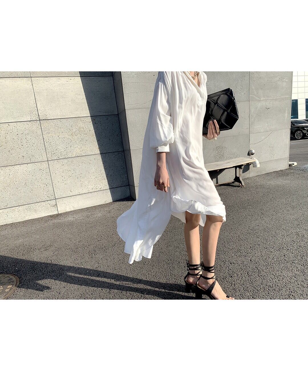 Vネックカジュアルルーズホワイトシャツ ドレス レディース ロング 韓国婦人79051494347
