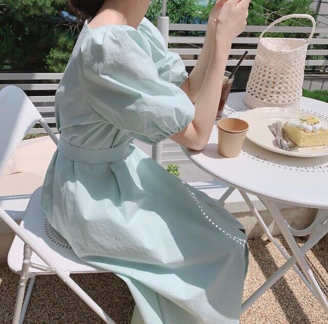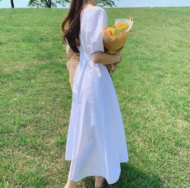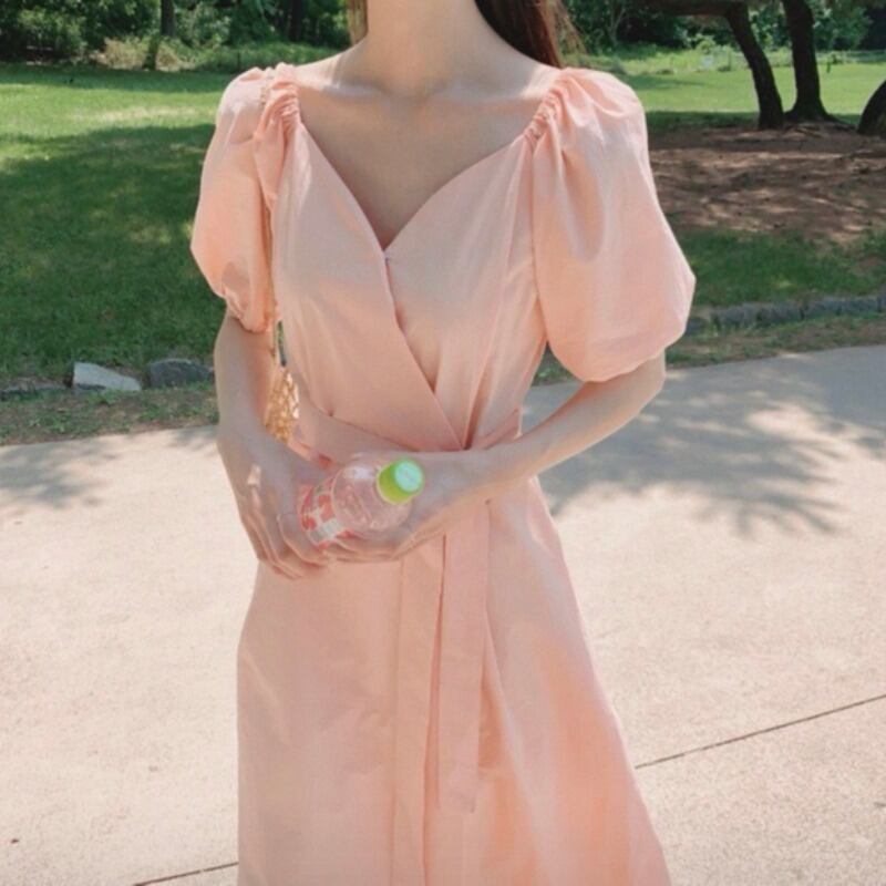 サマーVネックスリーブロングドレス レディース レース 夏物 レースアップ 韓国婦人53973469636