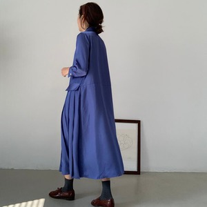 オータムスタンダードスタイルダブルブレストプリーツロングドレス レディース レトロ 秋物 ステッチ 韓国婦人38491538580