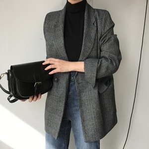 オータムスタンダードスタイルルーズカジュアル格子柄ジャケット レディース ロング レトロ 秋物 韓国婦人10793651953