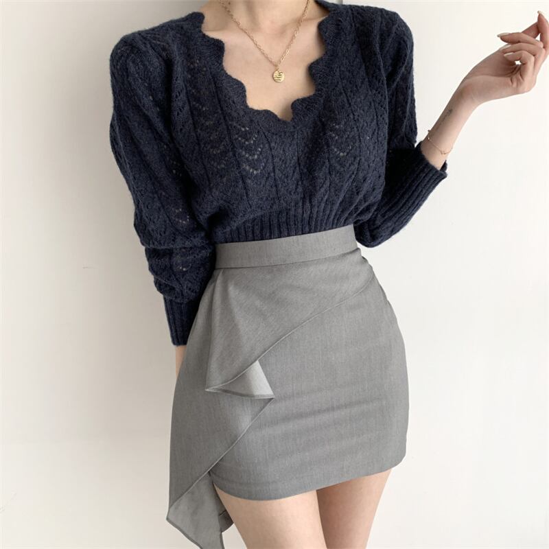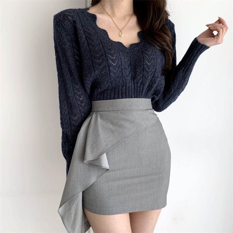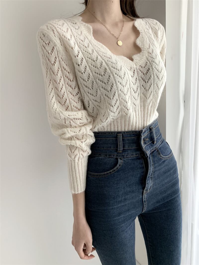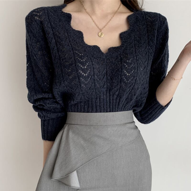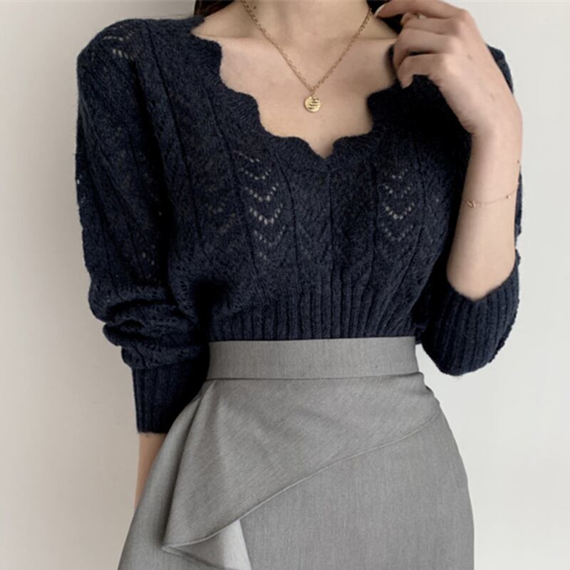 オータムスタイルVネックルーズセーター トップス レディース 秋物 韓国婦人8787170940