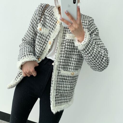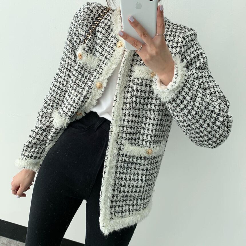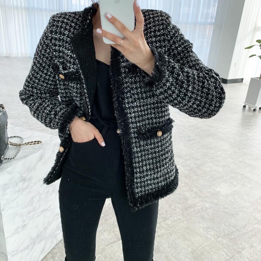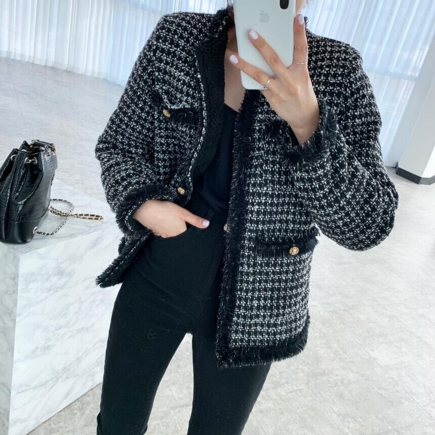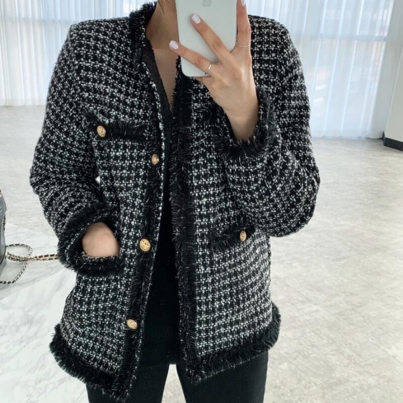 オータムウィンタースタイルスタンダードツィードジャケット ロング レトロ 秋物 冬物 ステッチ 韓国婦人93443570147