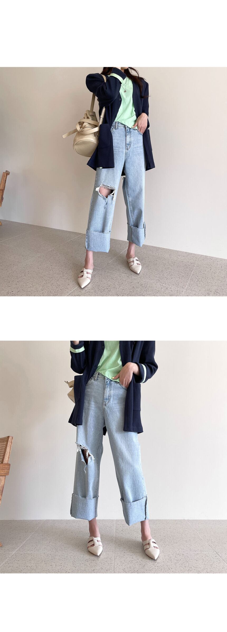 スタンダードルーズVネックダブルカラーストライプニットジャケット レトロ 韓国婦人4501047031