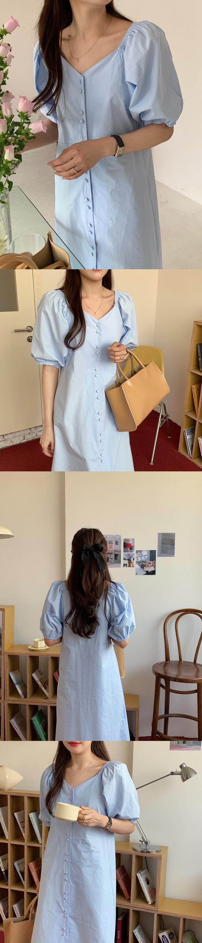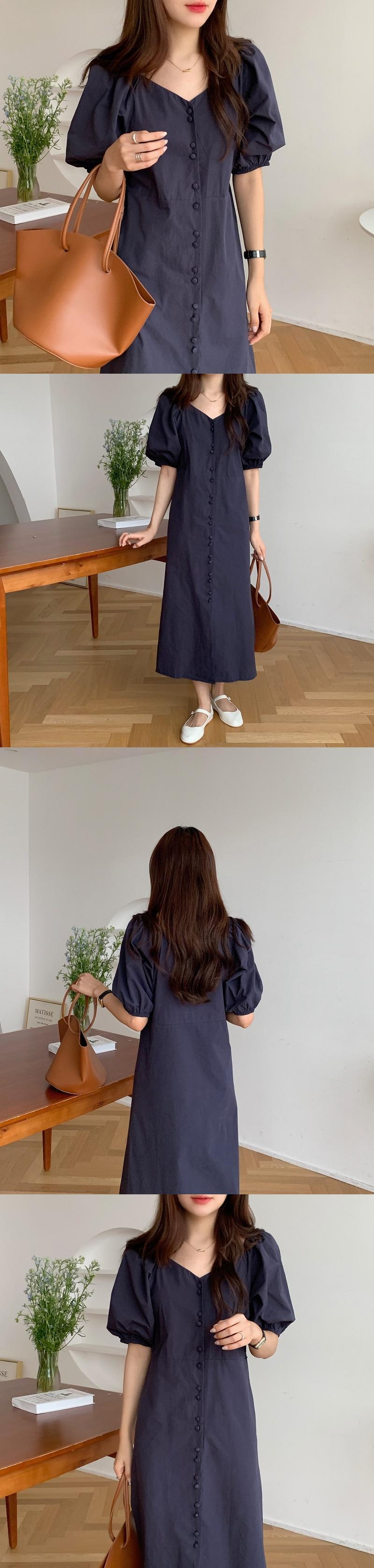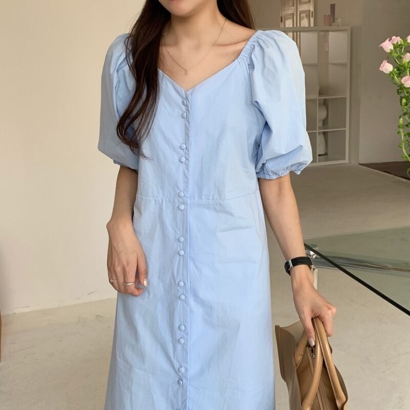 スカート サマーVネックウェストソリッド カラースリーブドレス 夏物 ソリッドカラー 韓国婦人77695656450