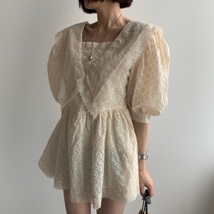 スカート ネイビーカラーレースドレス サマースリーブ 大人ガーリー スウィート キュート カジュアル 夏物 韓国婦人73634373672