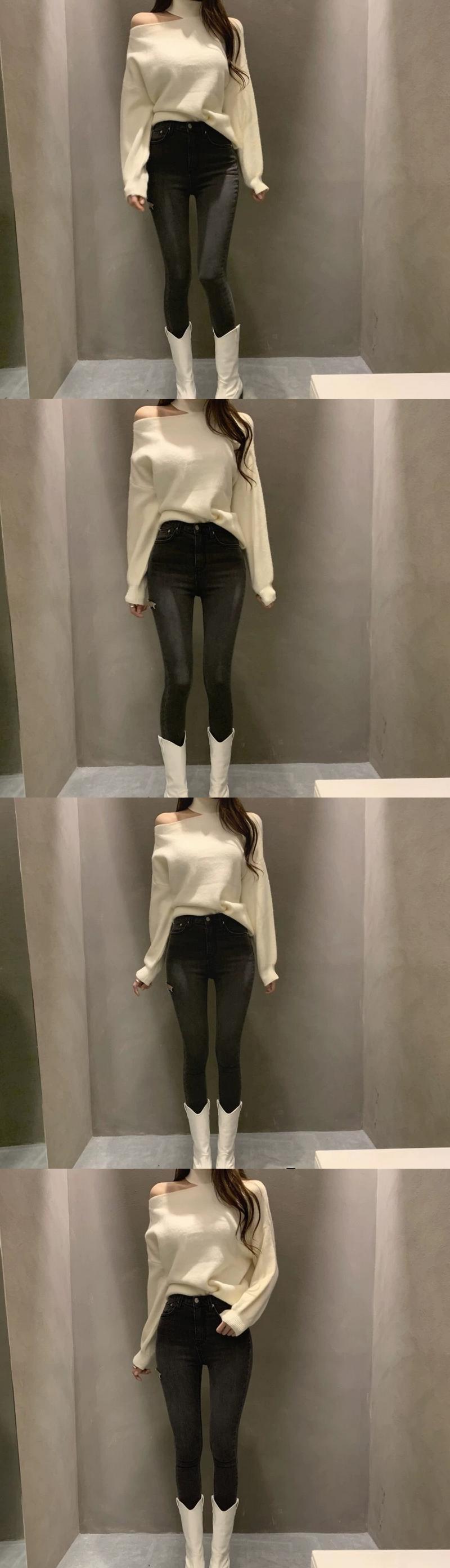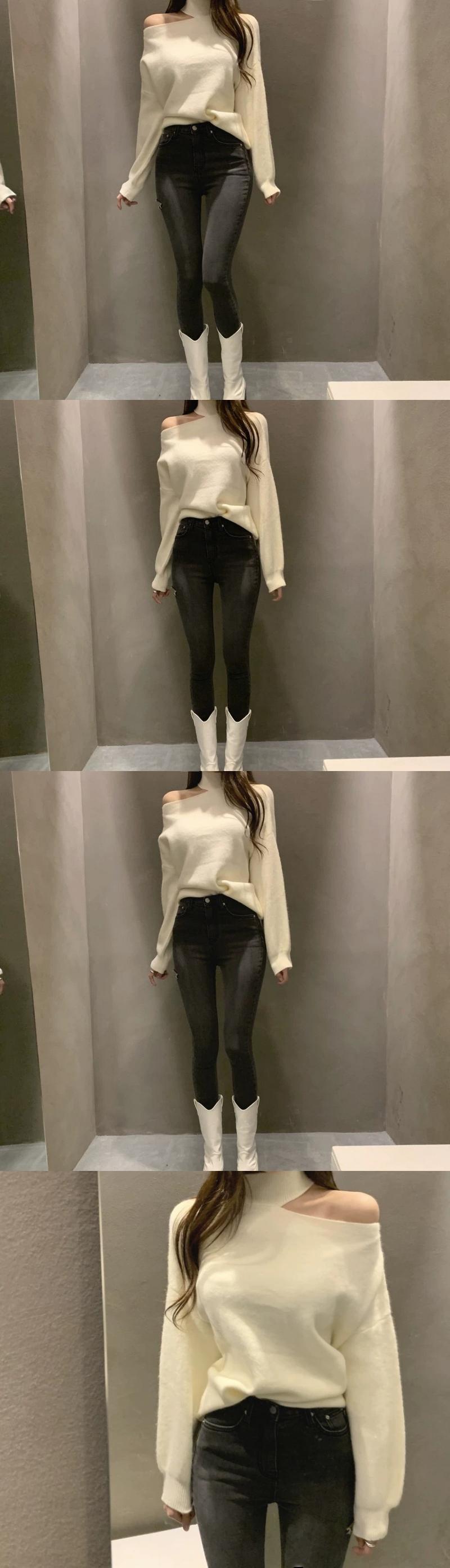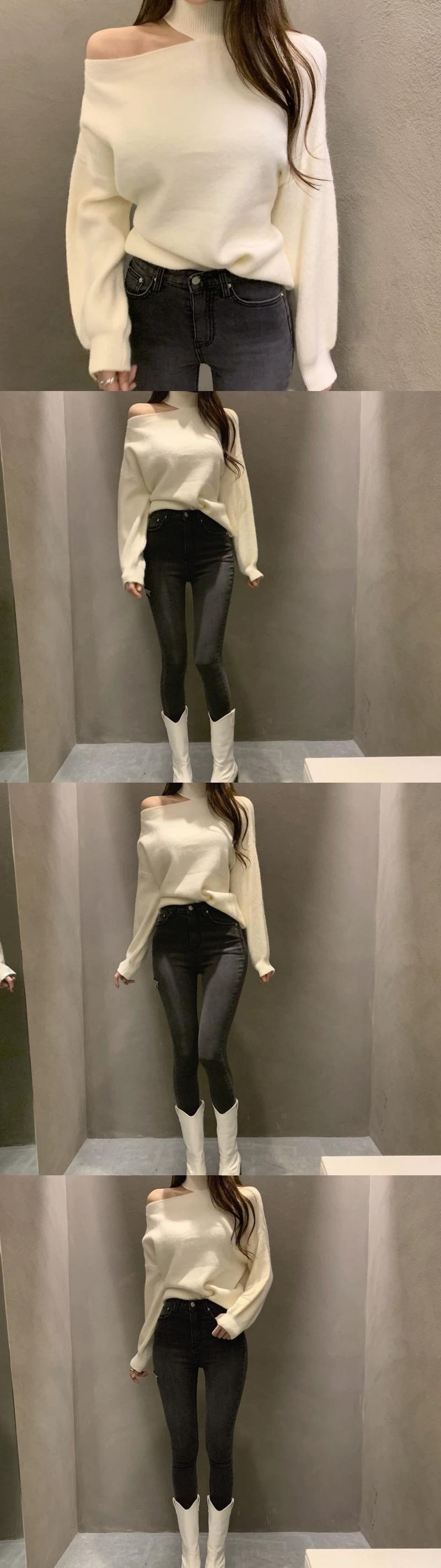 オータムウィンターシングルストラップレスプルオーバー ルーズニットセーター レディース 秋物 冬物 韓国婦人95137198759