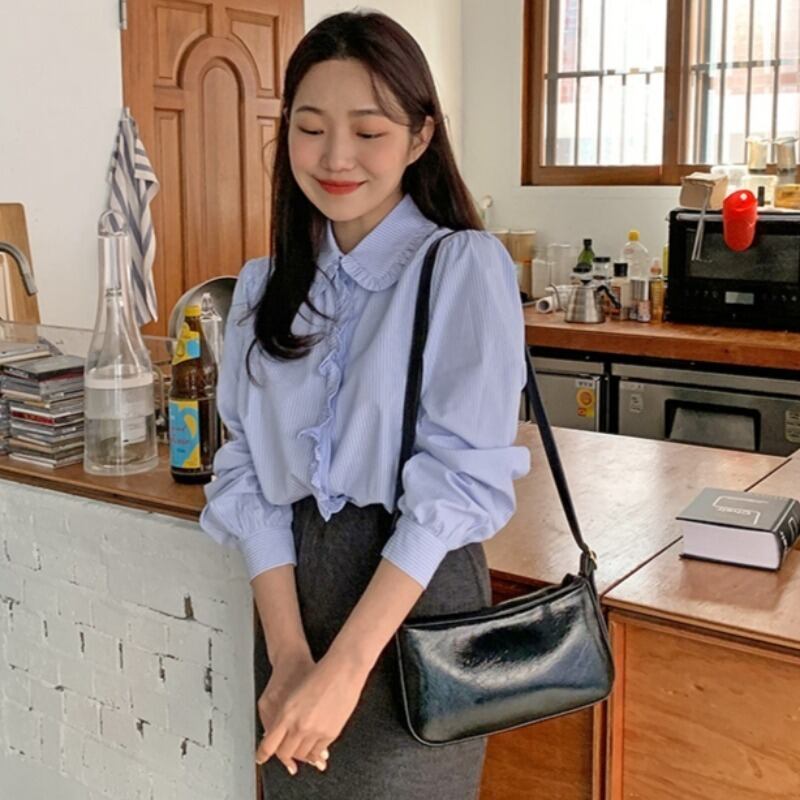 オータムルーズホワイトストライプシャツ レディース 秋物 韓国婦人76331679126