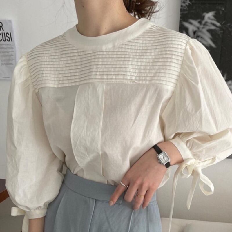 サマーリボンシャツ レディースルーズトップス 夏物 韓国婦人67982460067