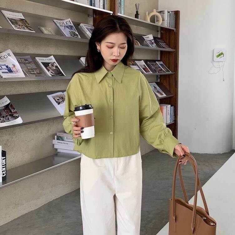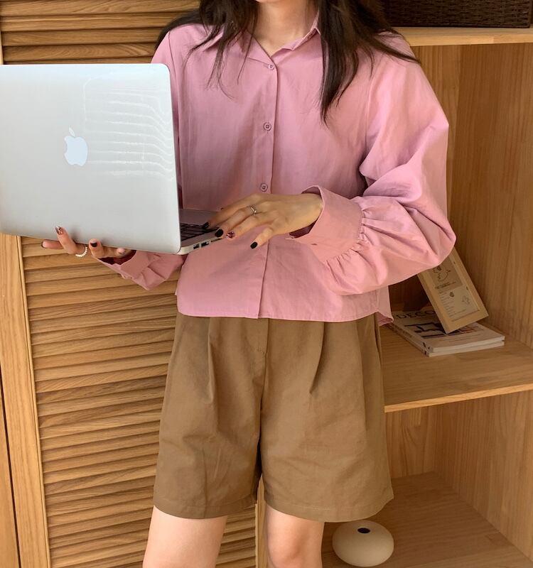 オータムスタンダードスタイルバックプリーツシャツ ショートトップス レディース ロング レトロ 秋物 韓国婦人42498395258