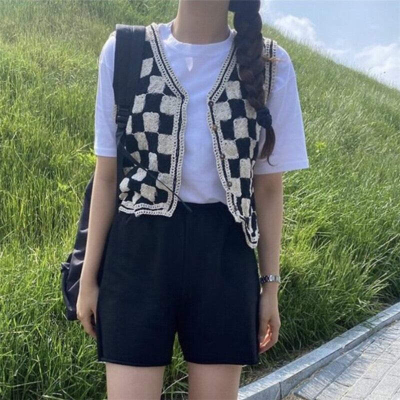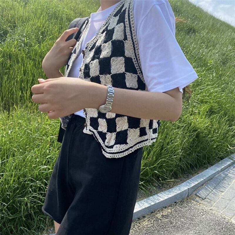 スタンダードパターンVネック薄手ノースリーブニットレディース レトロ 韓国婦人26032921702