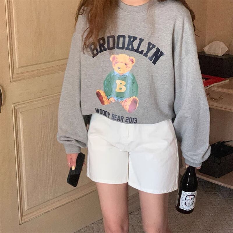 オータムスタンダードプリントカジュアルルーズラウンドネックセーター レディース ロング レトロ 秋物 Oネック 韓国婦人35405007284