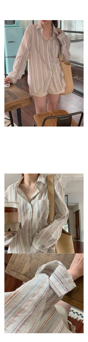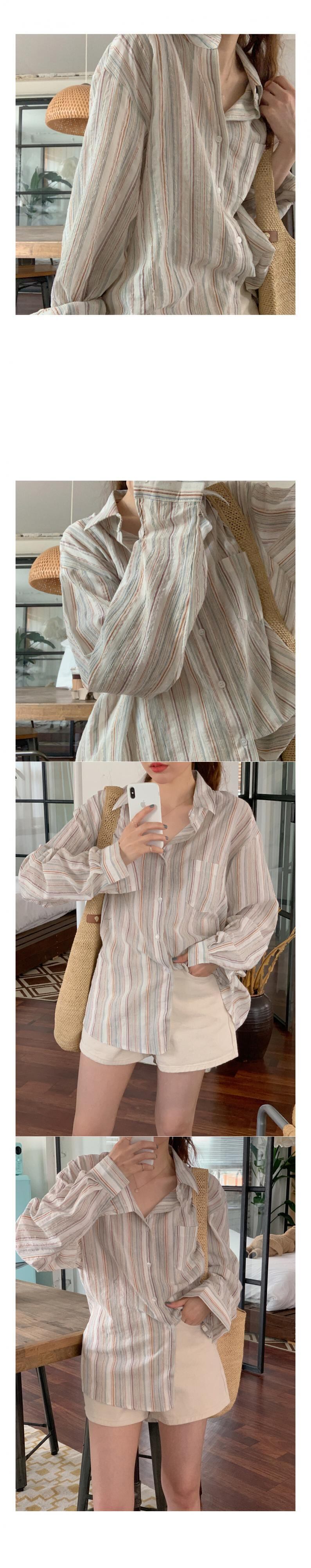 スタンダードスタイルカラーストライプカジュアルルーズ長袖スリーブシャツ レディース ロング コットン レトロ 韓国婦人36043254747