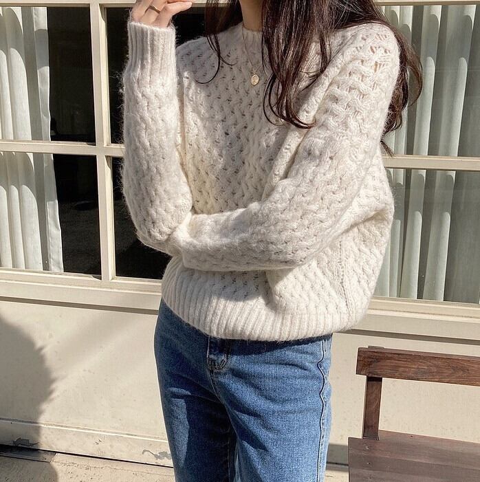 オータムウィンタールーズラウンドネックプルオーバー ニットセーター レディース ロング 秋物 冬物 Oネック 韓国婦人61398244149