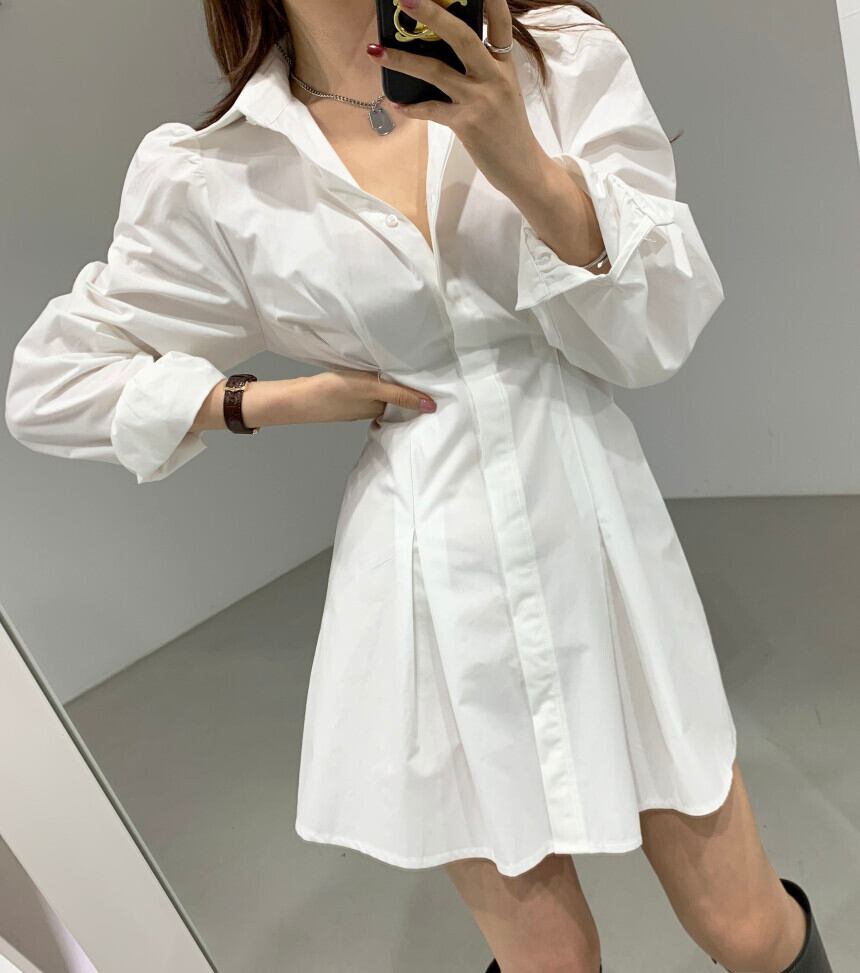 プリーツウェストシャツ ドレス ロング 韓国婦人14687270517