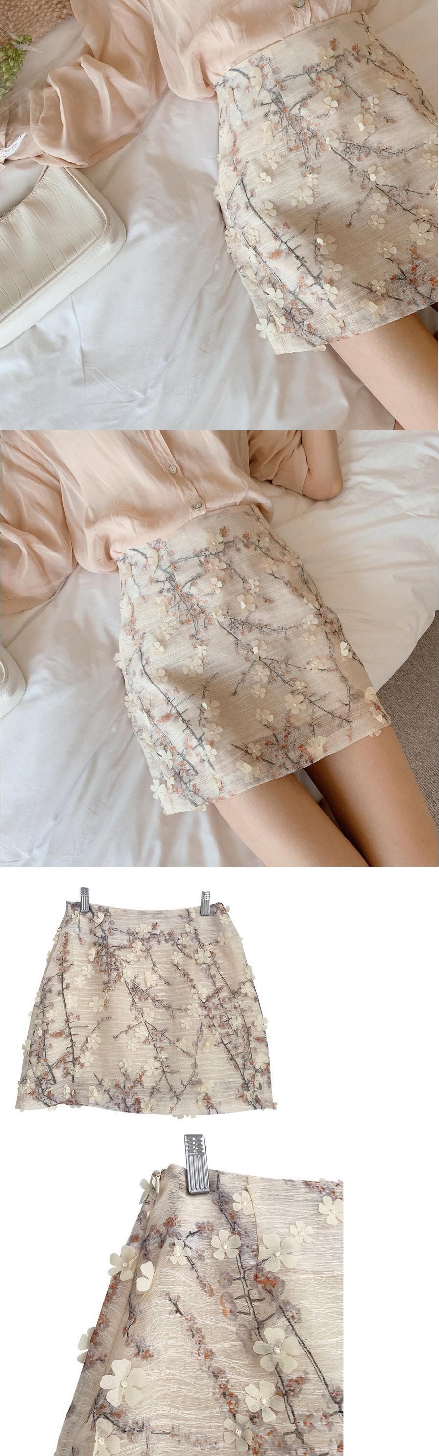 オータムハイウェストウェストFlowerデザイン 刺繍スリムAラインスカート 大人ガーリー スウィート キュート カジュアル 秋物 フラワーデザイン 韓国婦人41900836057