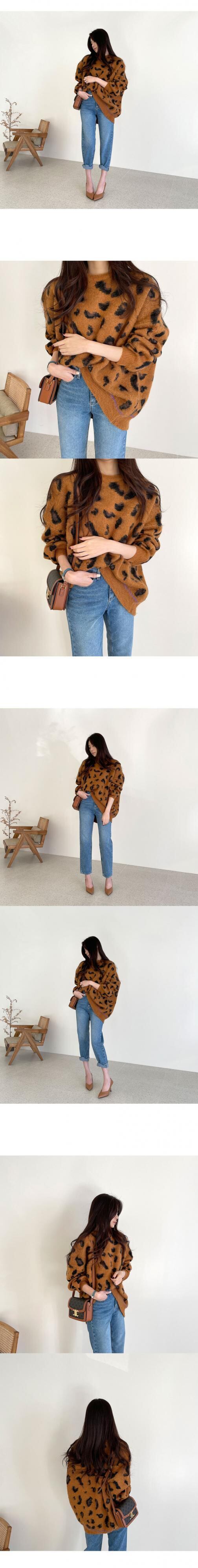 オータムウィンタースタンダードスタイルルーズレオパードラウンドネックプルオーバー ニットセーター レディース レトロ 秋物 冬物 Oネック 韓国婦人531570641