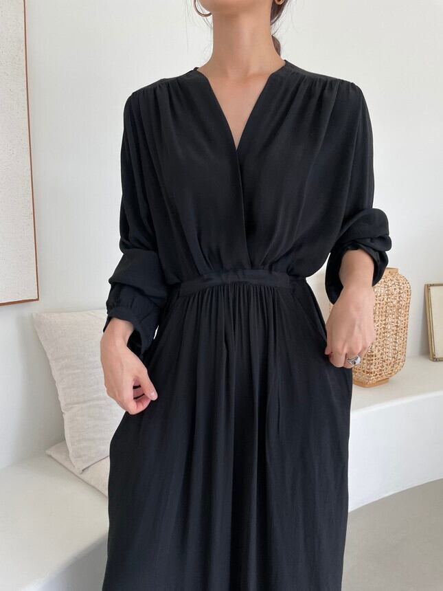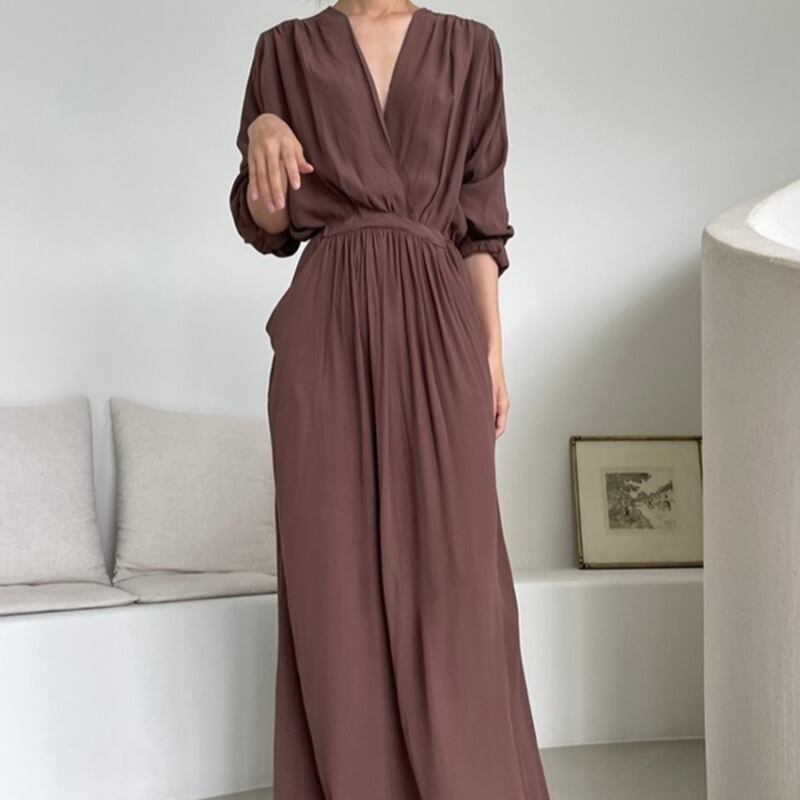 オータムスタイルVネックウェストダブルポケットルーズロングドレス レディース 秋物 韓国婦人62555354033