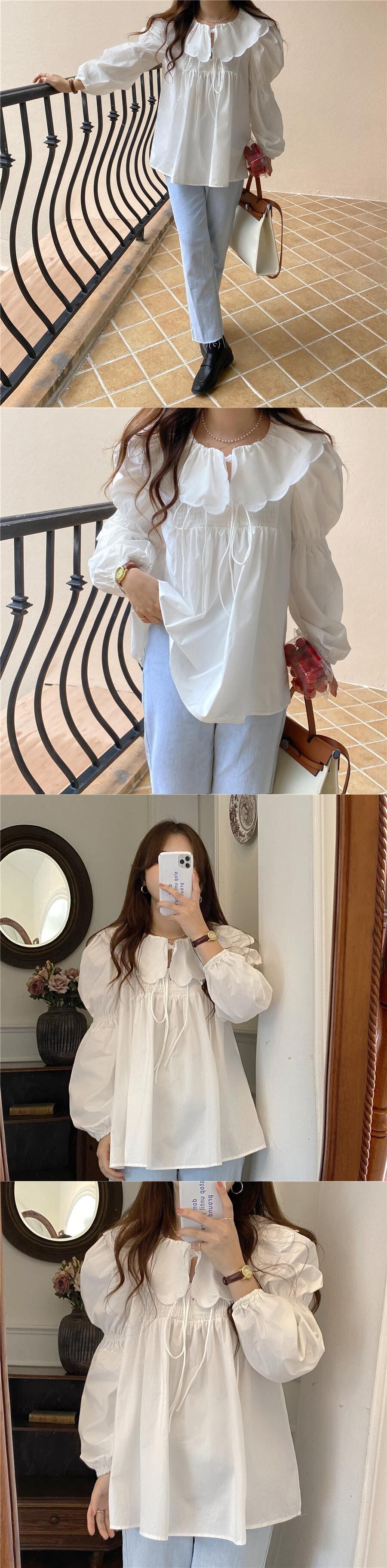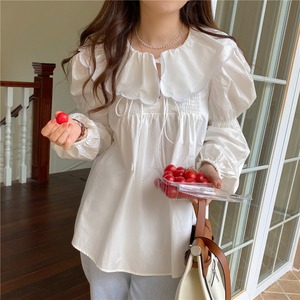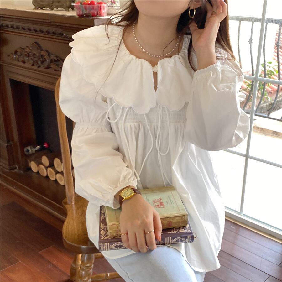 オータムカラールーズホワイトシャツ ロング 大人ガーリー スウィート キュート カジュアル 秋物 韓国婦人76155851213