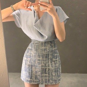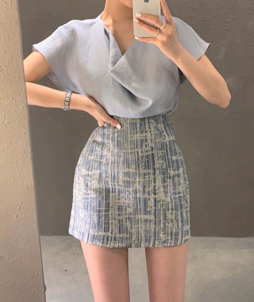 スタイルVネックショートシャツ ハイウェストAラインスカート サマー 夏物 韓国婦人78749186076