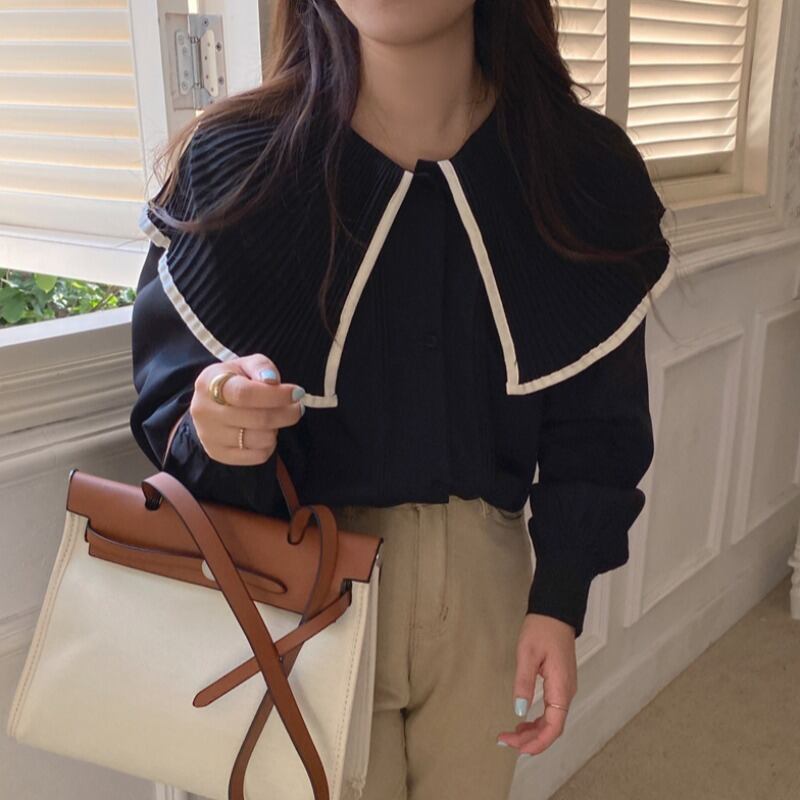オータムカラープリーツルーズシャツ トップス レディース ロング 秋物 韓国婦人69738595898