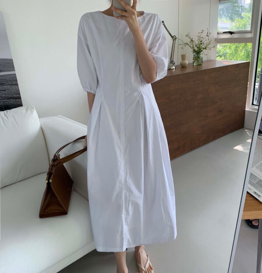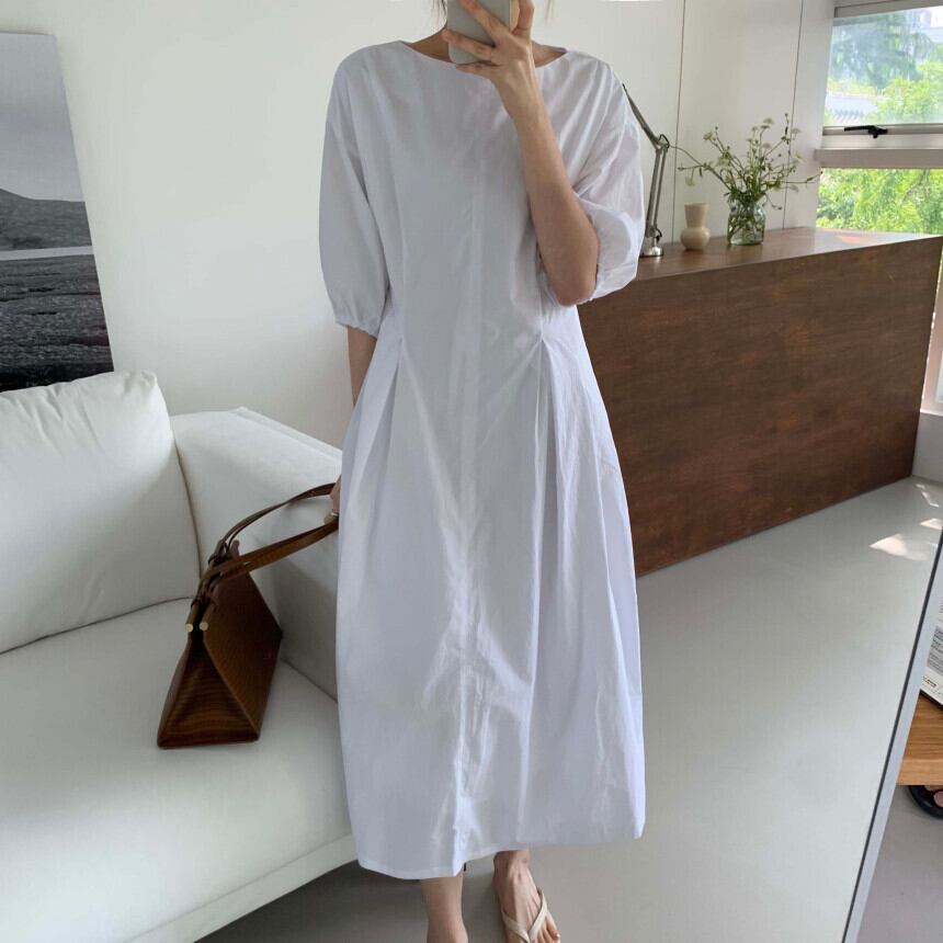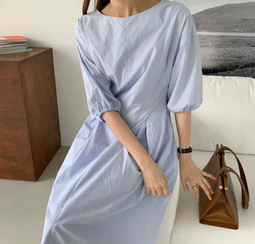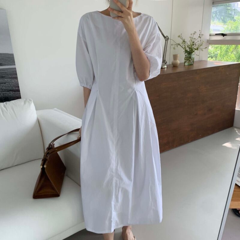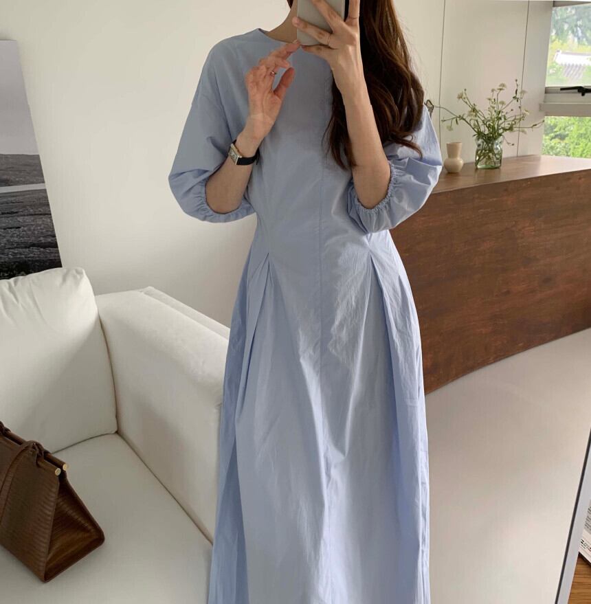 サマーラウンドネックスリーブウェストルーズ薄手ロングドレス レディース 夏物 Oネック 韓国婦人36598726580