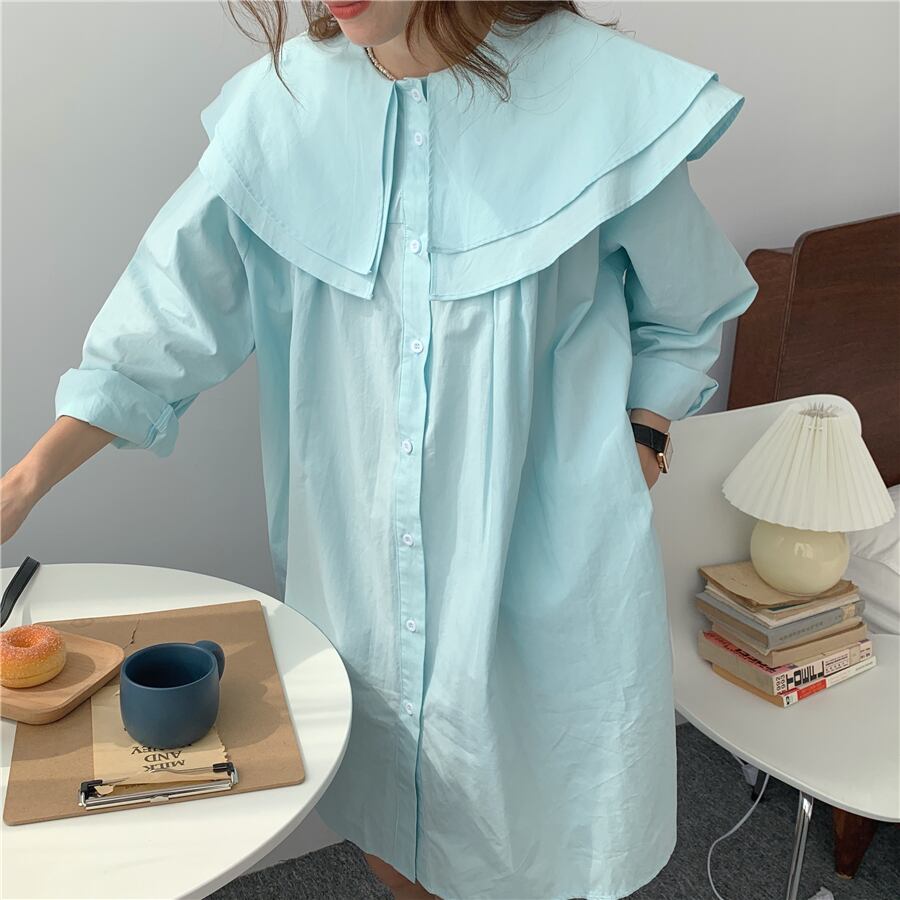 オータムダブルルーズシャツ ドレス レディース ロング 大人ガーリー スウィート キュート カジュアル 秋物 韓国婦人17333271215