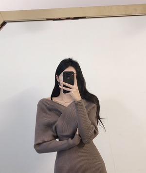 オータムウィンタースタンダードVネックスリムニットドレス レトロ 秋物 冬物 韓国婦人56625812405